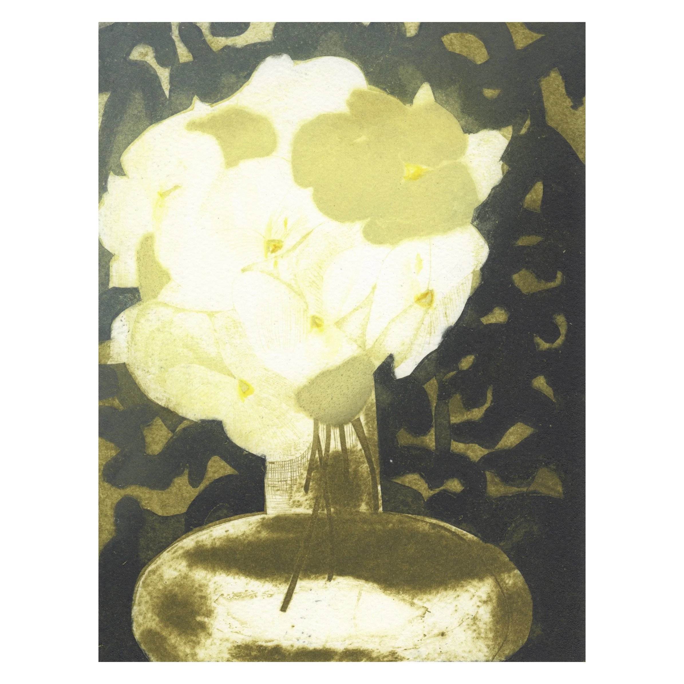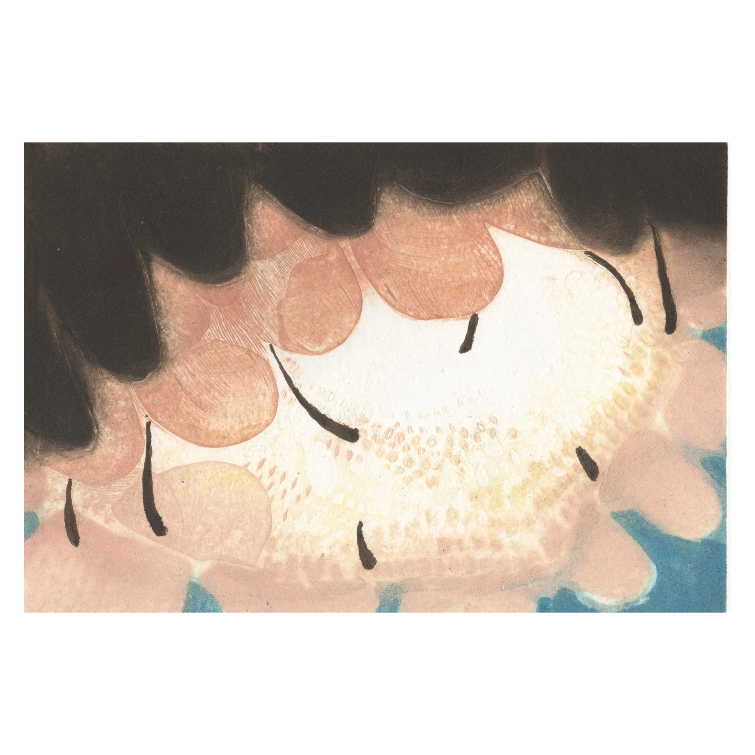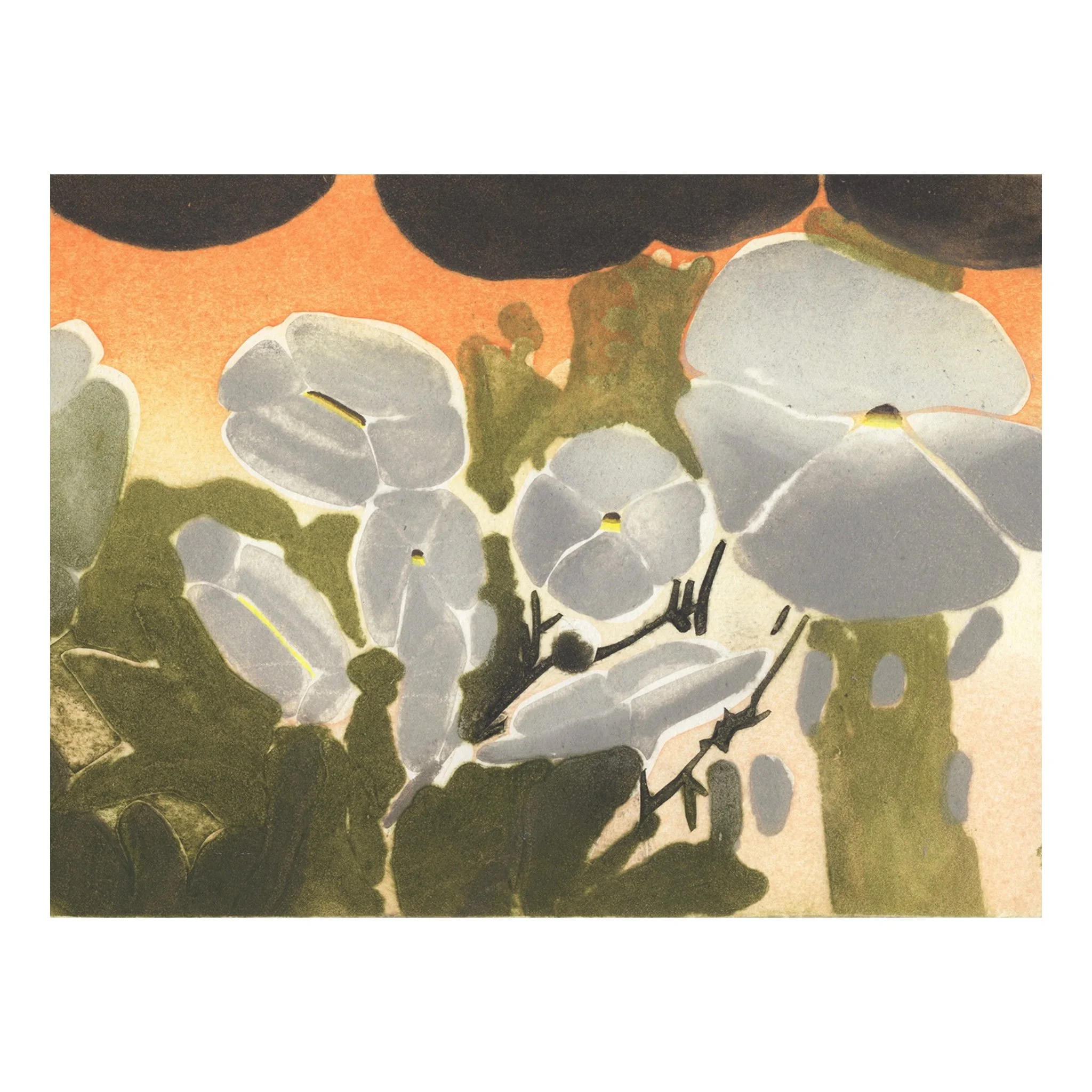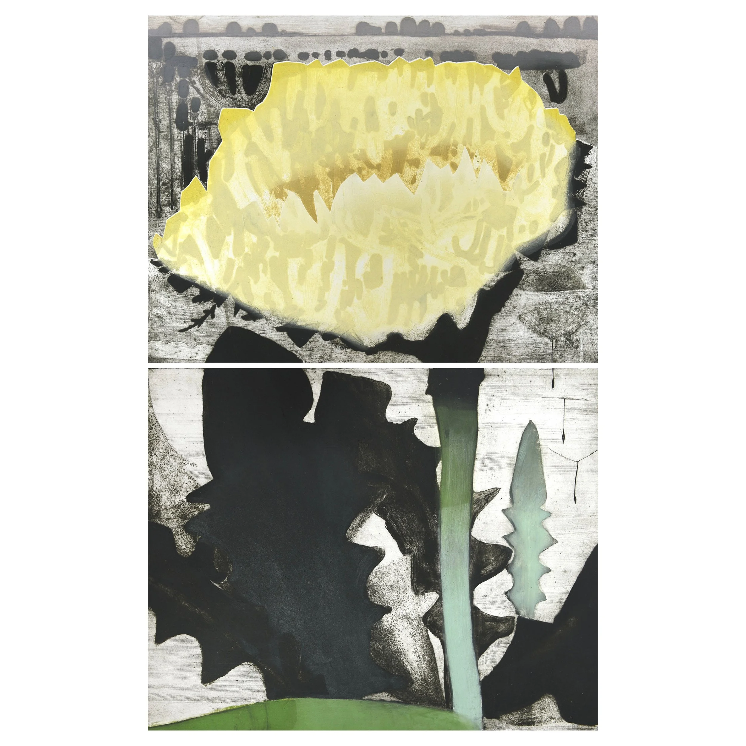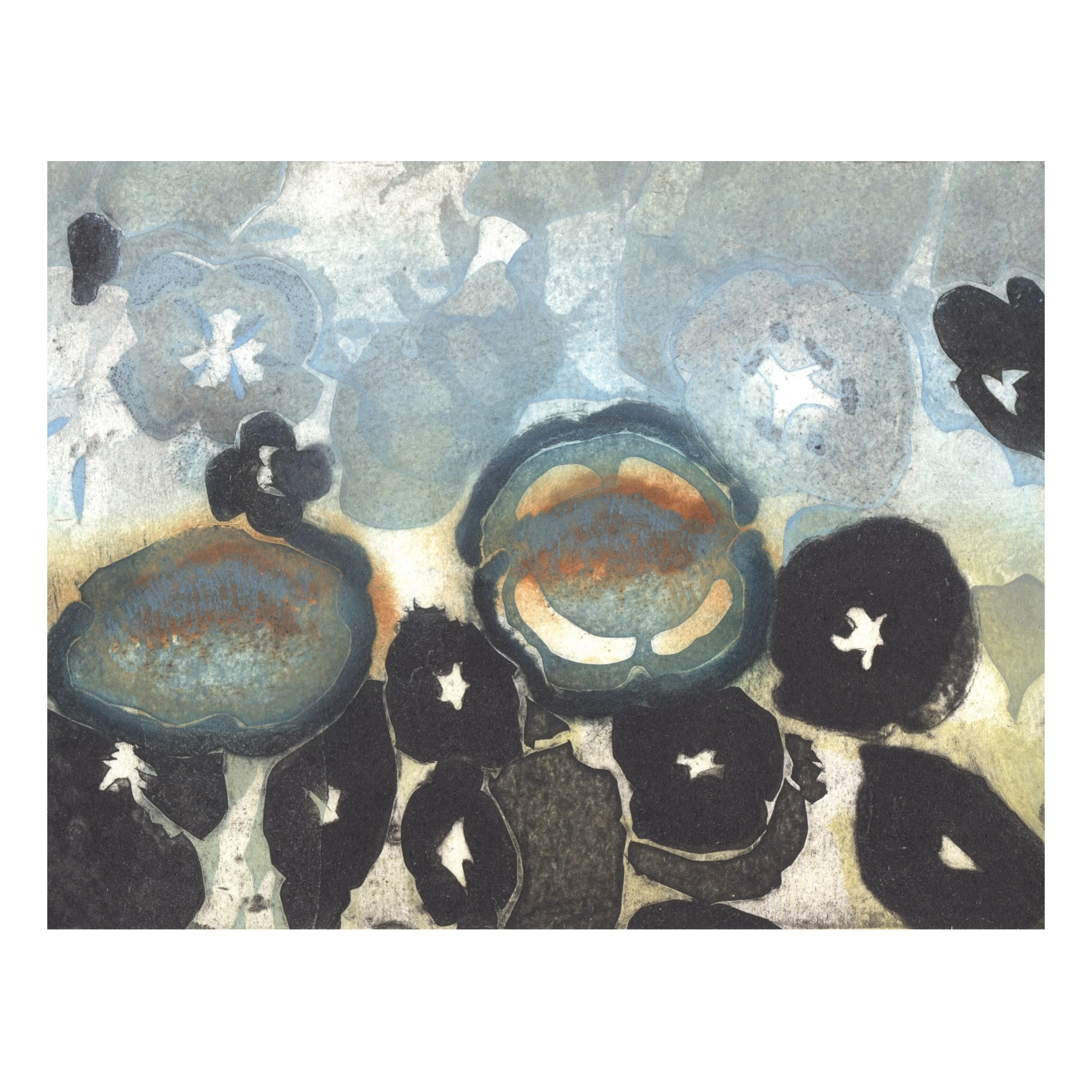 In the work of Katherine Jones, this same tension between endurance and loss is made visible. Her prints and paintings transform archetypal motifs — houses, trees, suns, flowers — into fragile markers of belonging and uncertainty. Through layered veils of colour and light, Jones constructs spaces that seem simultaneously to appear and dissolve, much like Frame’s remembered place: a site that holds its own vanishing within it.